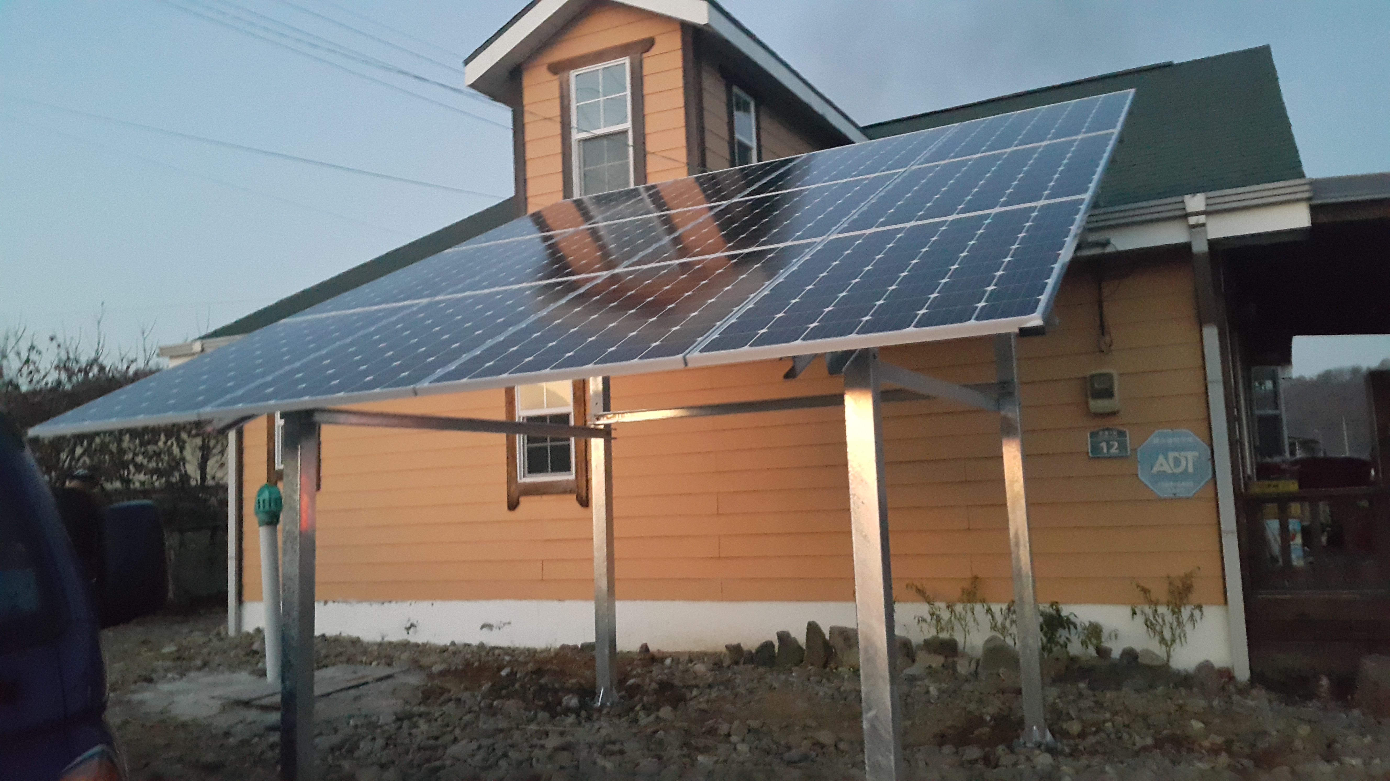 <2017년 태양광대여사업>혼합형 마당 설치 페이지 정보 작성자관리자 댓글 0건 조회 300회 작성일 18-01-11 13:40 본문 자갈과 시멘트가 혼합된 마당에 적절한 장비사용 및 시공법으로 구조물을 단단히 고정하여 태양광설비를 설치했습니다. LIST Prev<2017년 태양광대여사업>주차장 지붕 설치 18.01.11 Next<2017년 태양광대여사업>샌드위치판넬 지붕밀착형 설치 18.01.11 댓글목록 댓글목록 등록된 댓글이 없습니다.